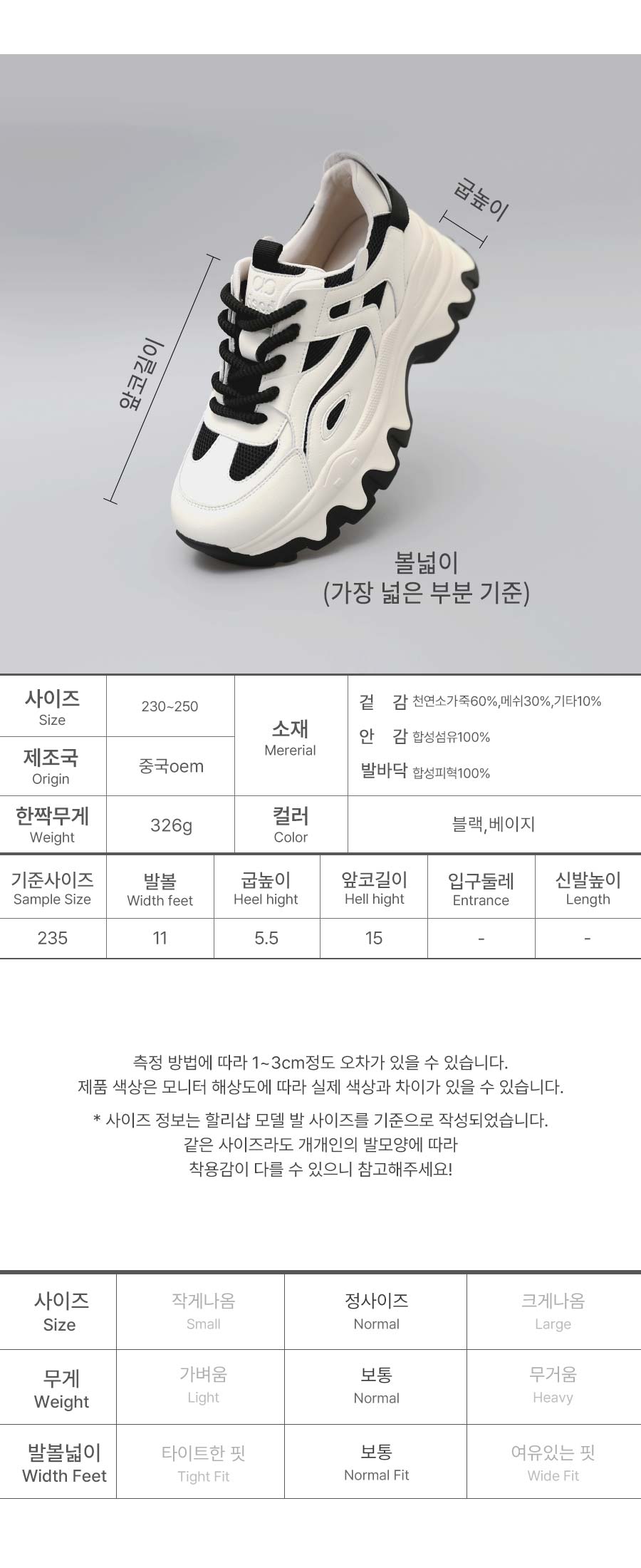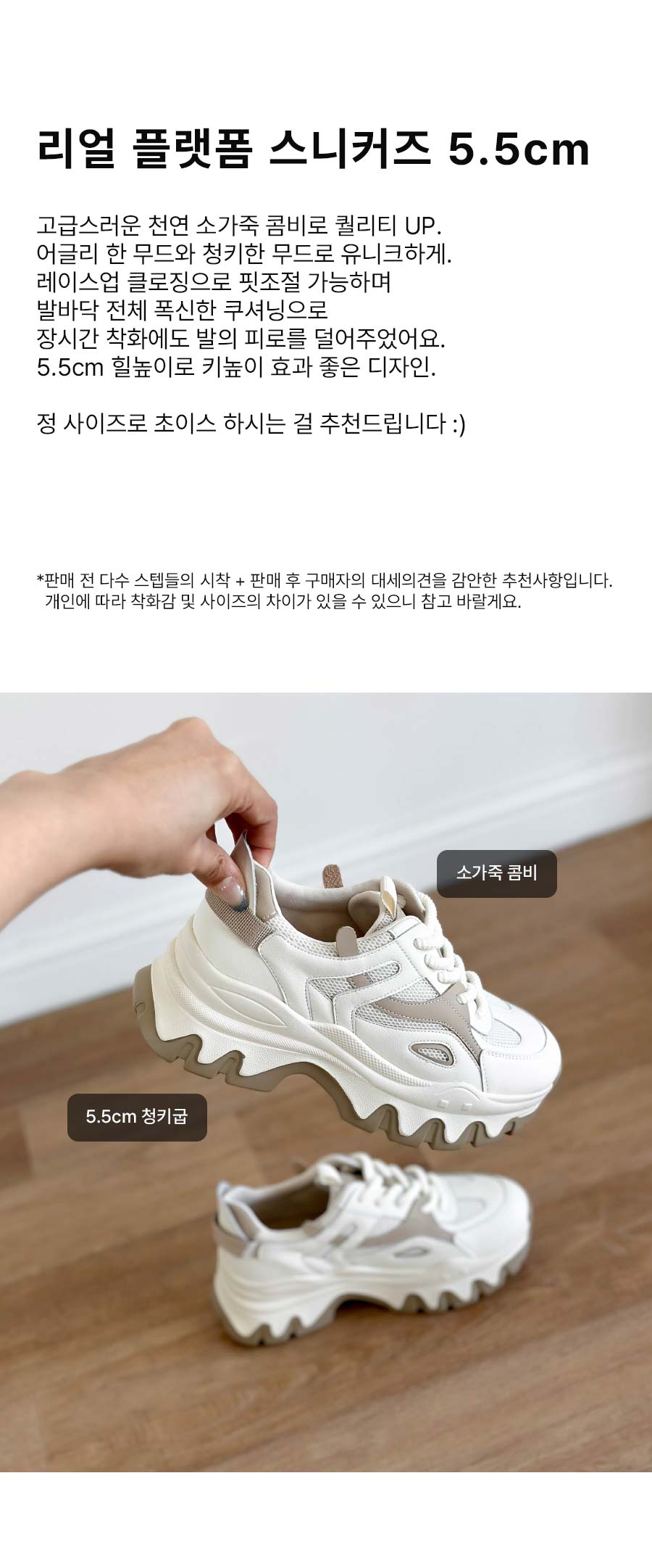 [소가죽] 리얼 플랫폼 스니커즈 5.5cm (119X9)